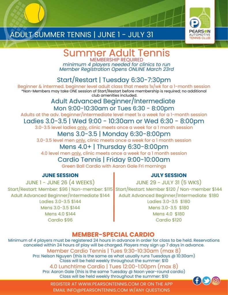Class full online? Email info@pearsontennis.com to be added to the waitlist! If a spot opens, you will automatically be registered and notified via email.