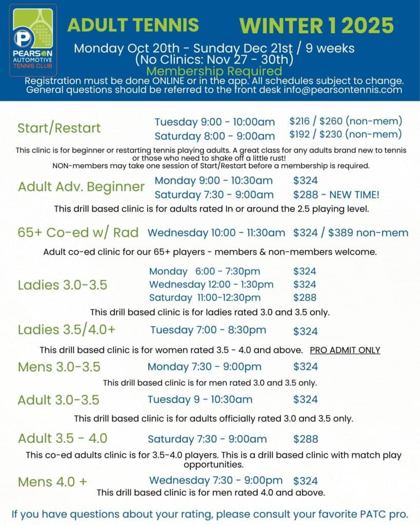 ARE YOU IN THE CURRENT FALL SESSION? REGISTRATION OPENS 9/22/25 8:00AM ONLINE NOT IN FALL OR WANT TO CHANGE DAYS OR CLINICS? 9/29/25 8:00AM ONLINE